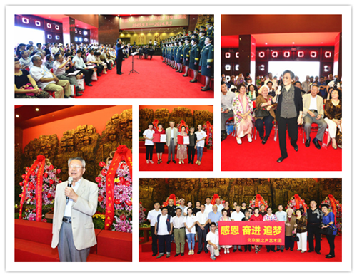 9月3日,在卢沟桥畔的中国人民抗日战争纪念馆内歌声嘹亮,“中国人民抗日战争胜利纪念日专场演出”正在举行。由天津市景华公益基金会和北京爱之声艺术团共同启动以圆梦抗战老兵为主要内容的“爱之声基金”。