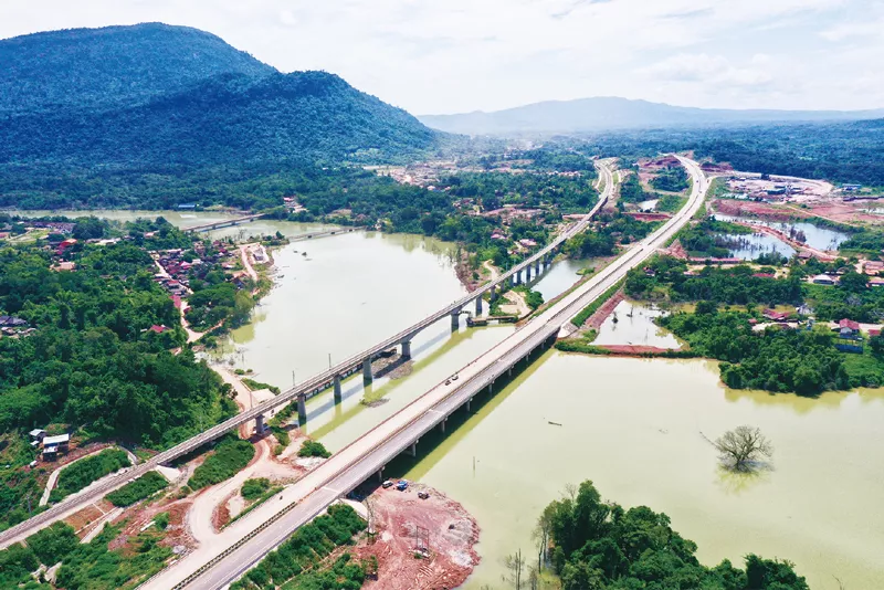 位于澜沧江—湄公河流域的中老铁路是中国“一带一路”倡议与老挝“变陆锁国为陆联国”战略对接项目。中老铁路全部采用中国技术标准和管理标准建设,设计时速160公里,为电气化客货混运铁路,计划2021年12月建成通车。图为在老挝万象省航拍的建设中的中老铁路(左)。新华社发