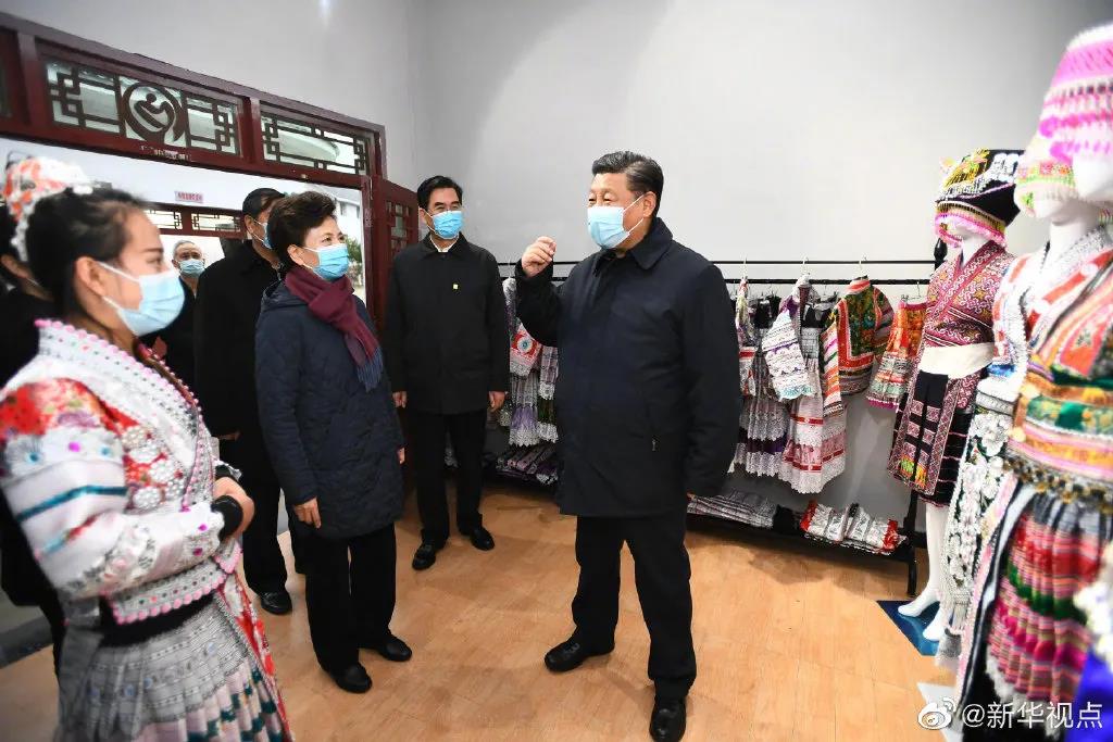 3日下午,正在贵州考察调研的习近平总书记来到毕节市黔西县新仁苗族乡化屋村。扶贫车间里,一件件精美的手工苗绣服装、特色小饰品等吸引了总书记的目光。习近平向村民详细询问制作工艺流程。他对大家说,传统的也是时尚的,你们一针一线绣出来,何其精彩!一定要发扬光大苗绣,既能继承弘扬民族文化、传统文化,也能为扶贫产业、乡村振兴作出贡献。