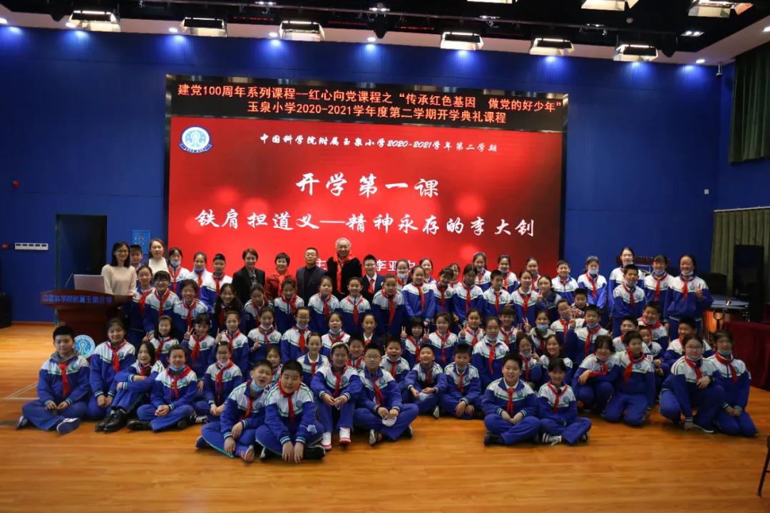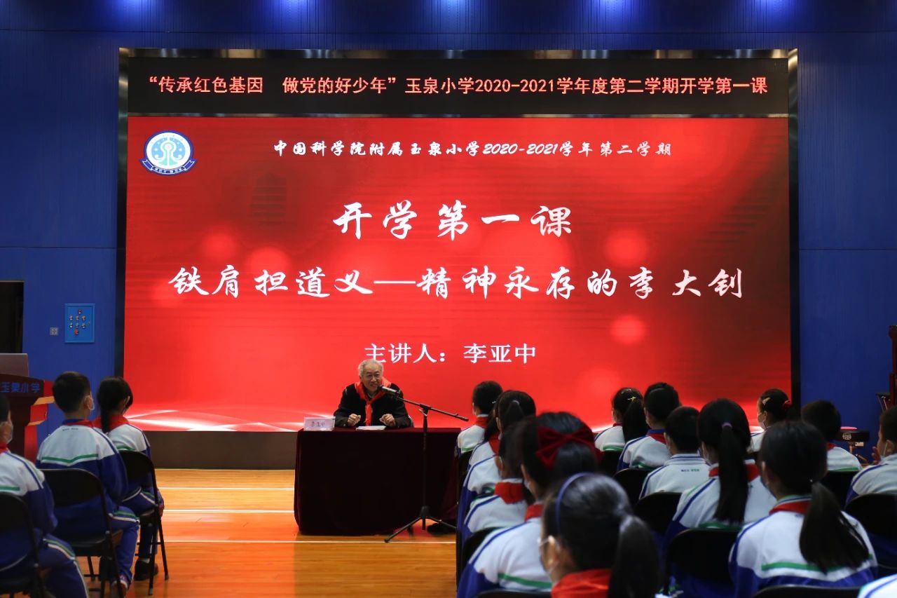 3月1日上午,中国科学院附属玉泉小学特别邀请李大钊之孙李亚中老师,全国红军小学建设工程理事会理事、景华公益基金会会长张景华开学第一课为师生们讲述:铁肩担道义——精神永存的李大钊和《李大钊和中国共产党建党的革命故事》。