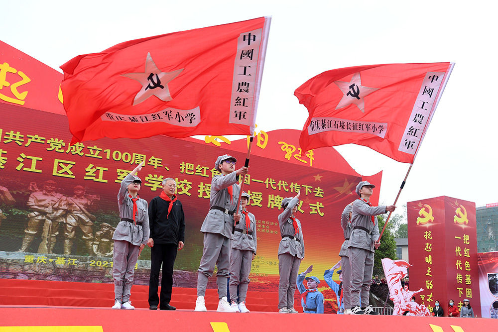 当日,重庆4所红军学校授旗授牌仪式在重庆市綦江区永城镇王良广场举行。